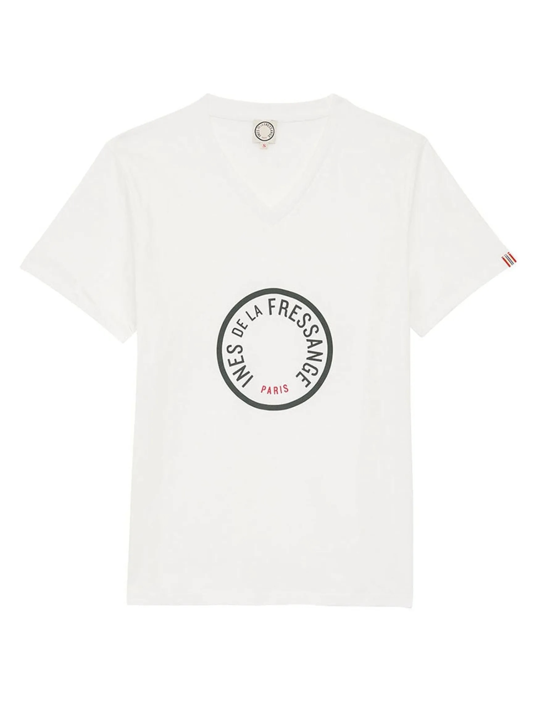 Discover the new Aurore T-shirt screen-printed with the famous Ines de la Fressange Paris logo. This V-neck t-shirt is ideal for your casual looks.