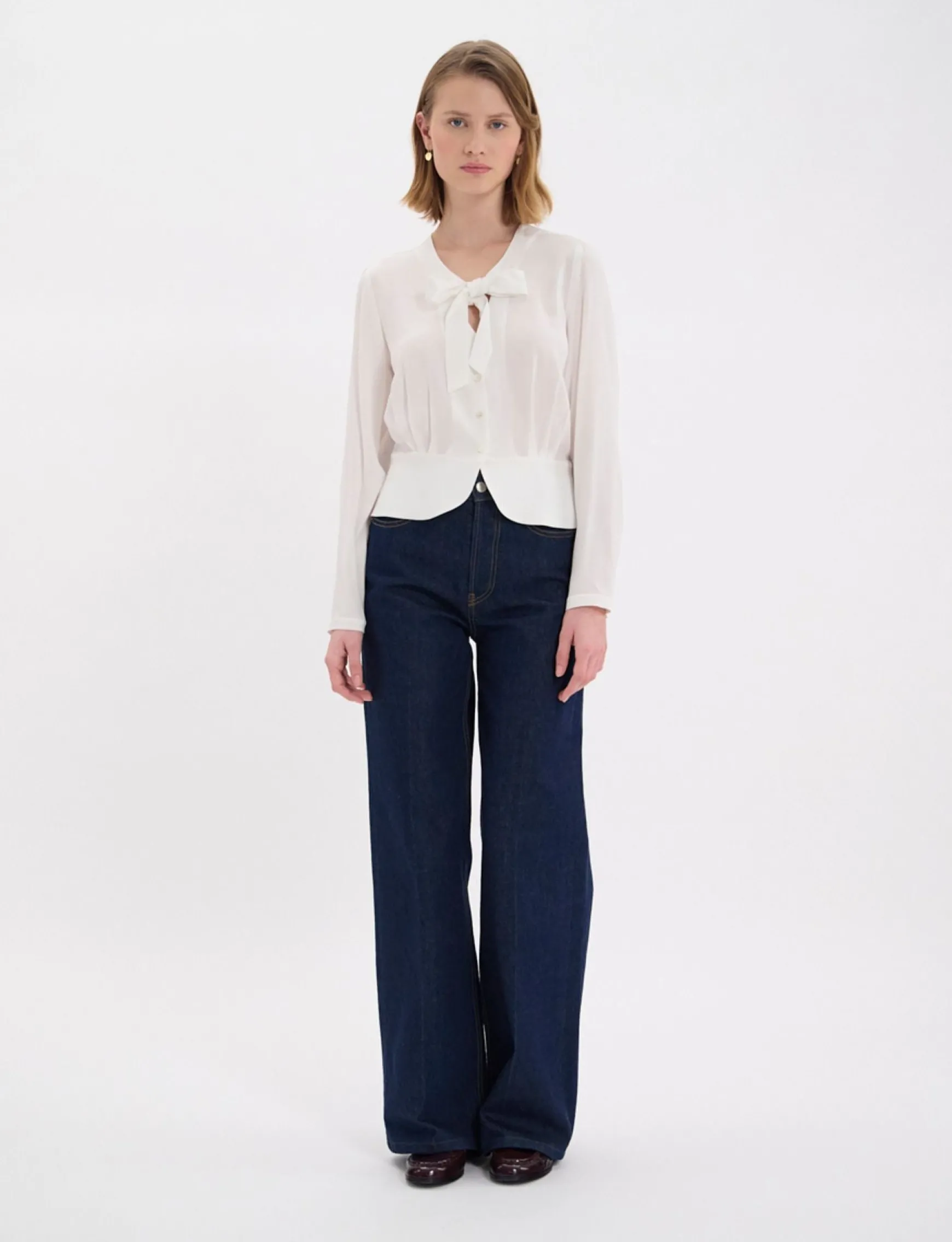 The Emeline slim-fit top is original, elegant and versatile, perfect for any occasion, day or evening, and can be easily teamed with dress trousers or jeans for a more casual look. It features a bow at the front and a host of stylish details.