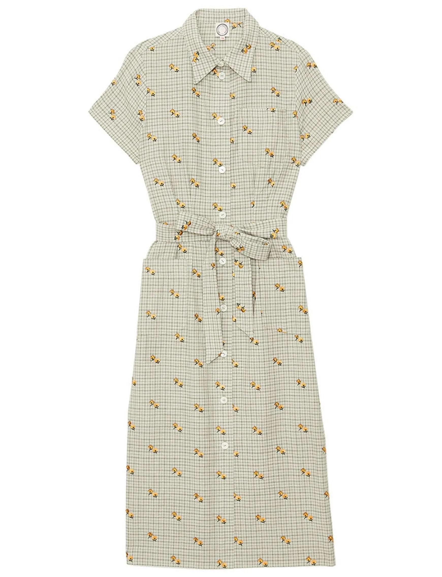 Discover the Ethel shirt dress. This short-sleeved, off-the-shoulder dress is elegant and easy to wear, and ties at the waist with a belt to slim and embellish your figure.
