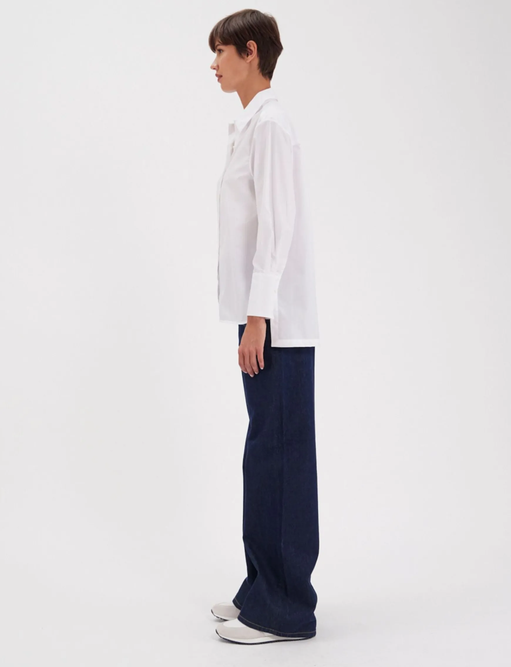 The Falco shirt offers simple elegance for all your outfits. Its straight cut is made all the more original and refined by the play of different panel lengths: the back is longer than the front. This version is made from GOTS-certified organic cotton. In immaculate white, it will give you a touch of sophistication… in total relaxation, perfectly in keeping with the Ines de la Fressange style. It can be worn, for example, with raw denim jeans or smart trousers.