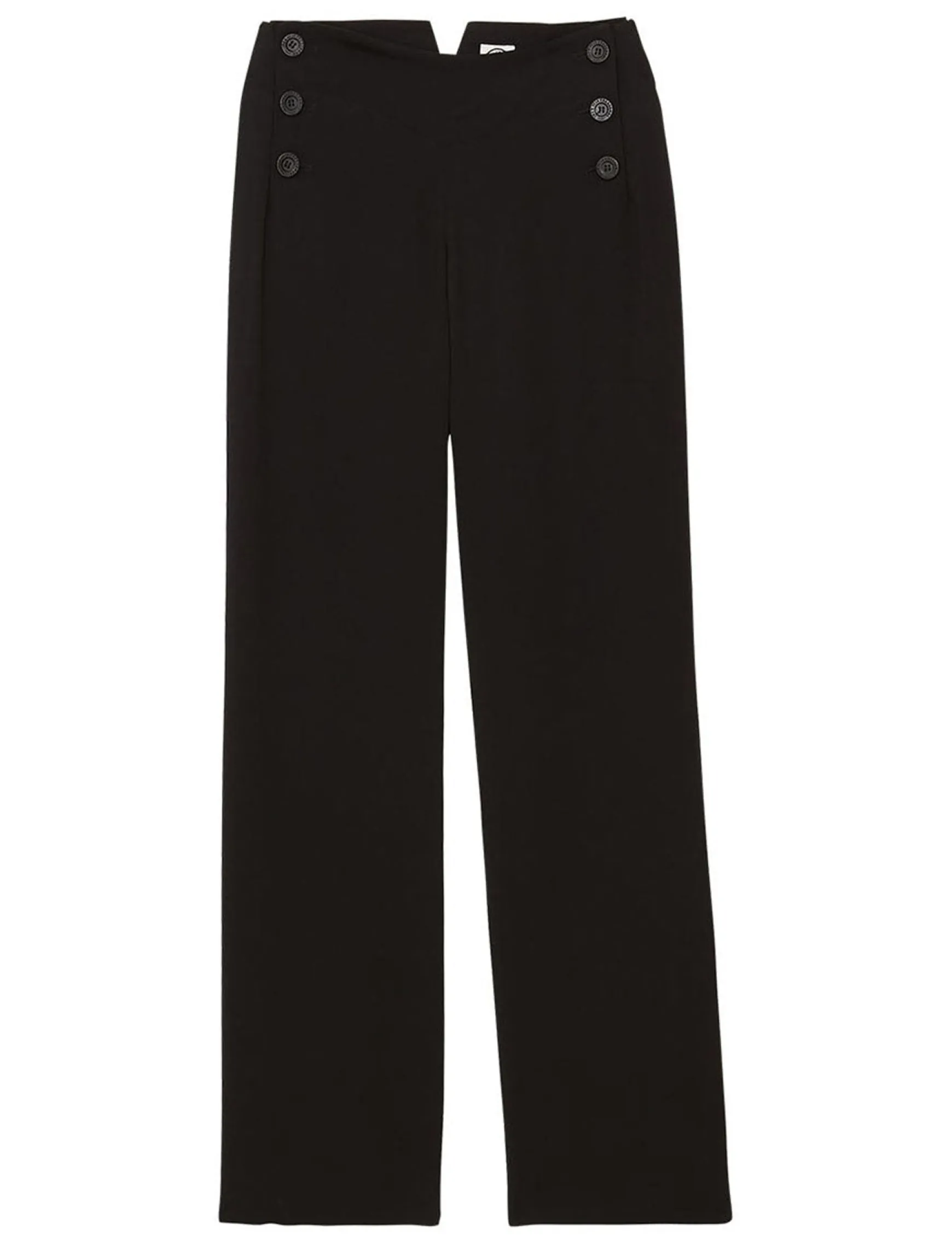 The Gabriel trousers in black viscose are elegant and comfortable. Their high waist, enhanced by a double row of buttons, and straight cut make them a timeless piece.