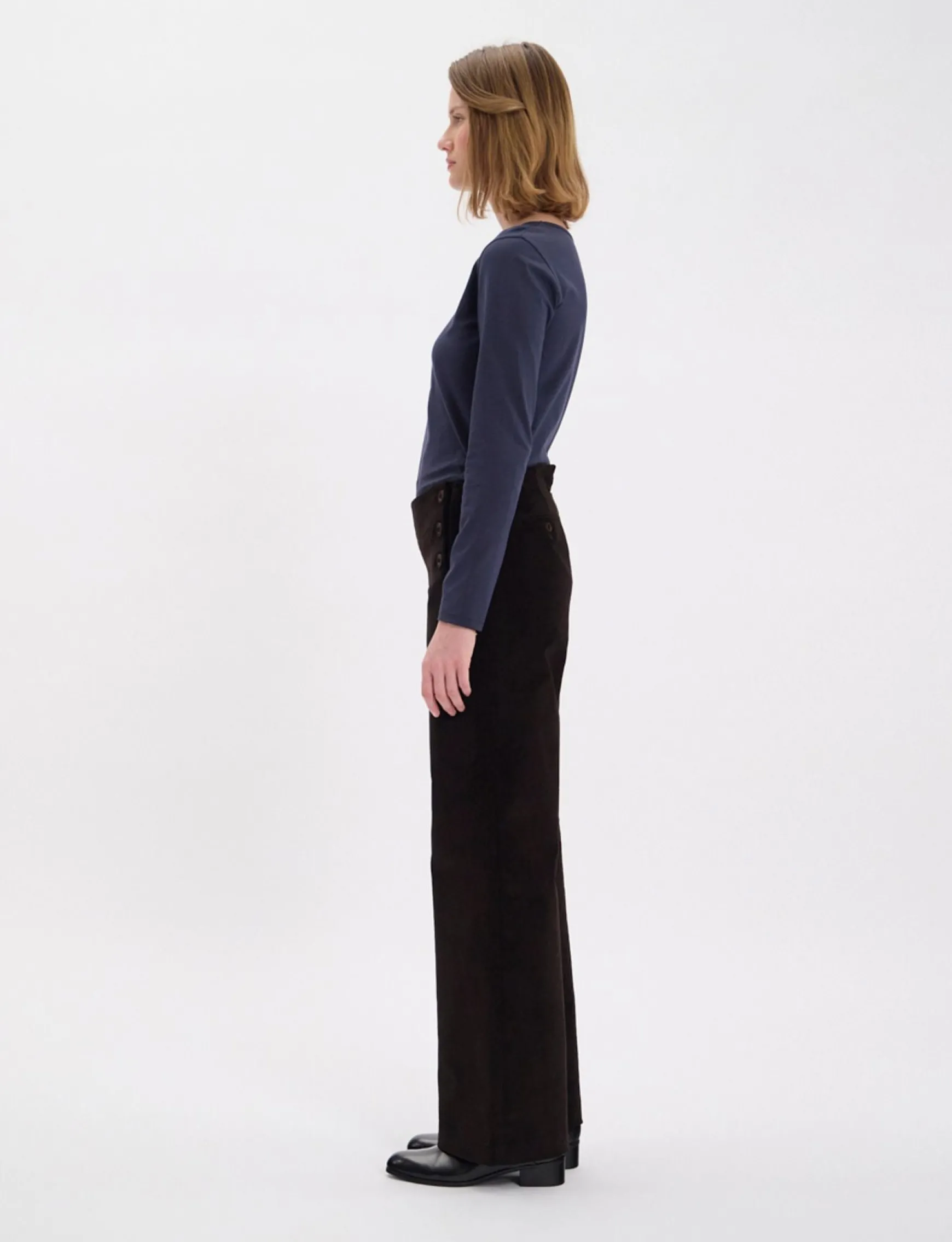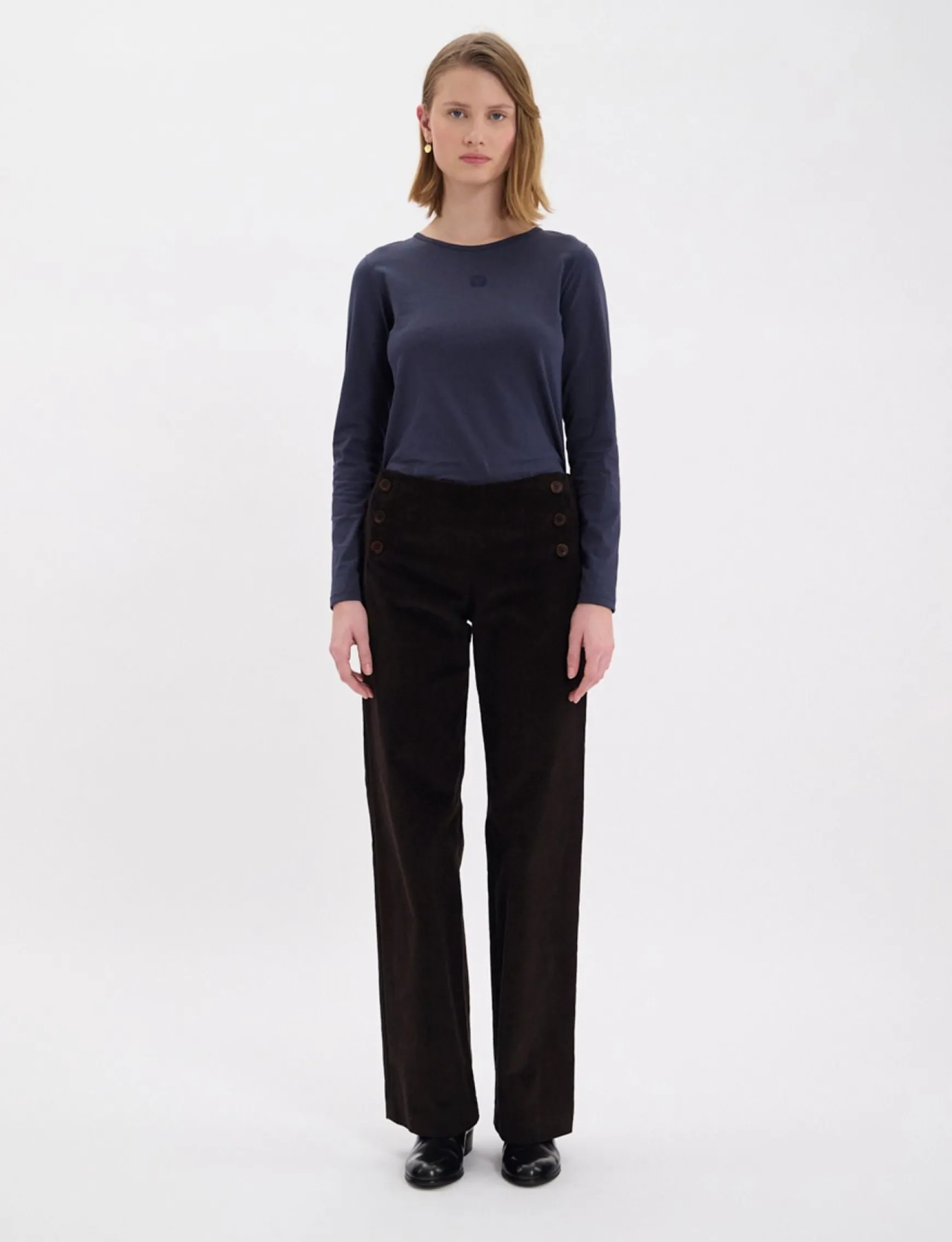 The Gabriel trousers are as elegant as they are comfortable, and are known as ‘bridge’ trousers because of their high waistline, enhanced by a double row of buttons. With their straight, slightly flared cut, they’re the trousers loved by women the world over – a timeless favourite! Here they’re made from cotton with a touch of stretch for added flexibility.