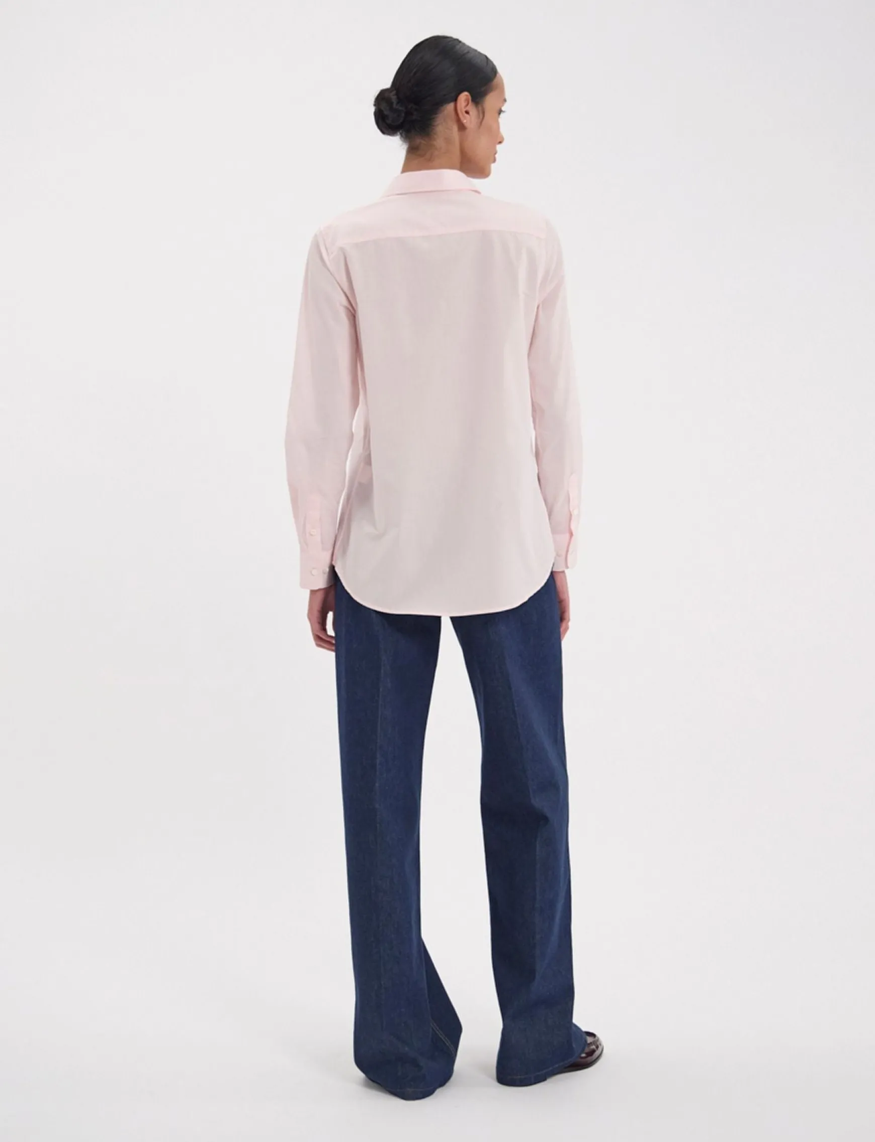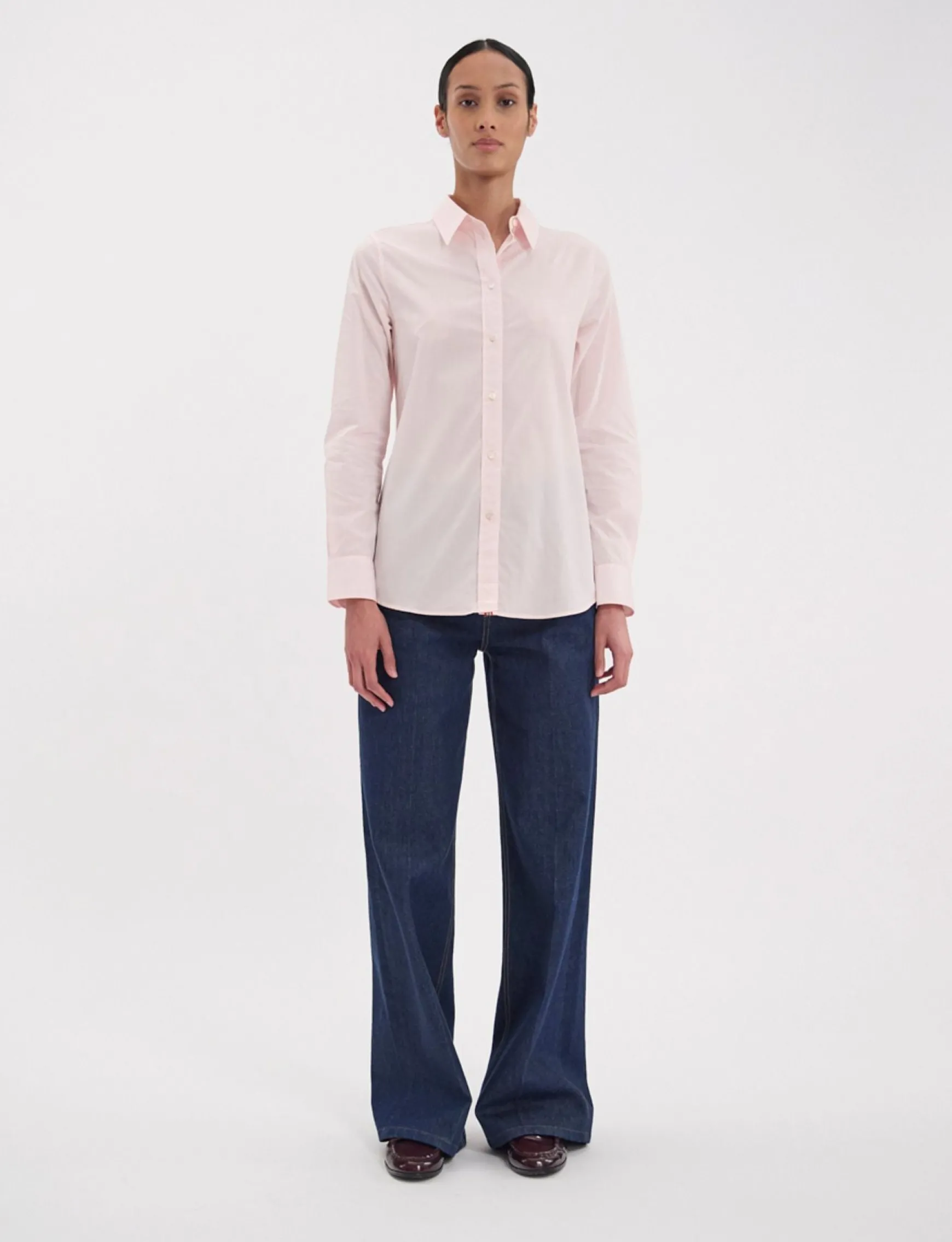 The Martin shirt is a must-have for every Parisienne, and Ines’ favourite… A timeless version in pale pink cotton, very slightly fitted, with the signature blue, white and red braid on the hem.