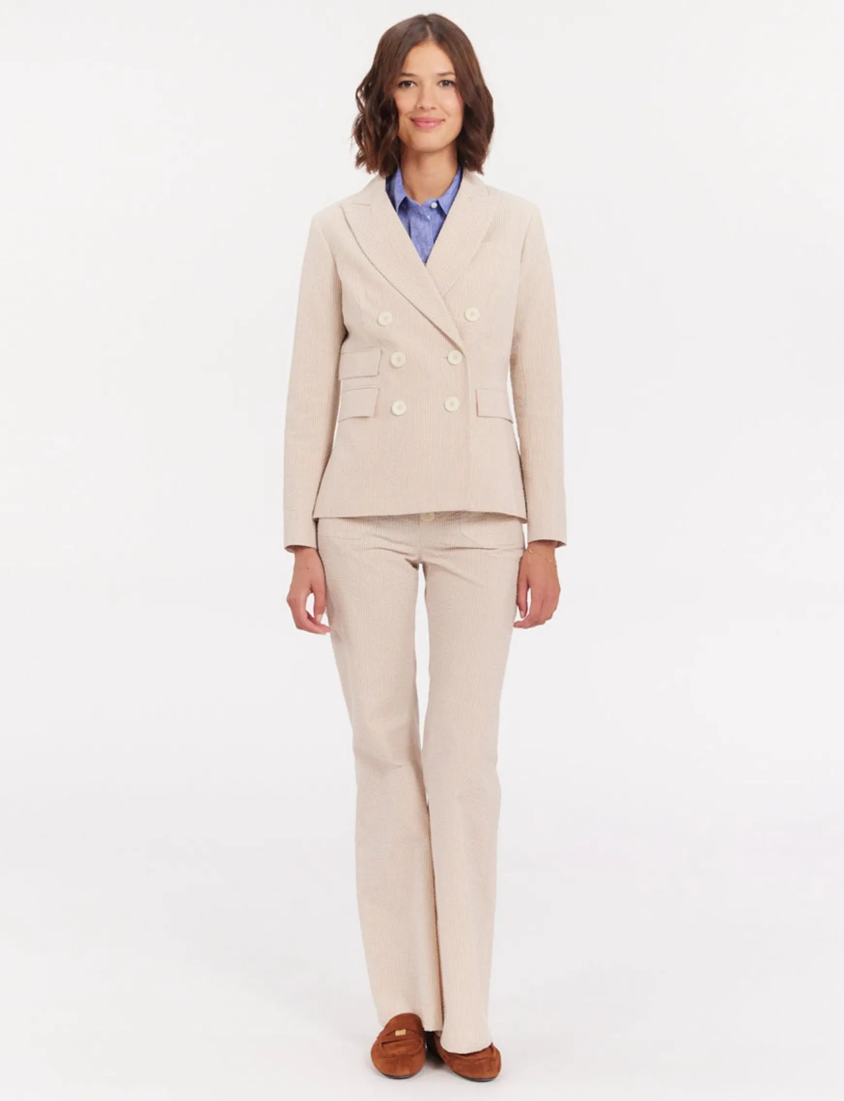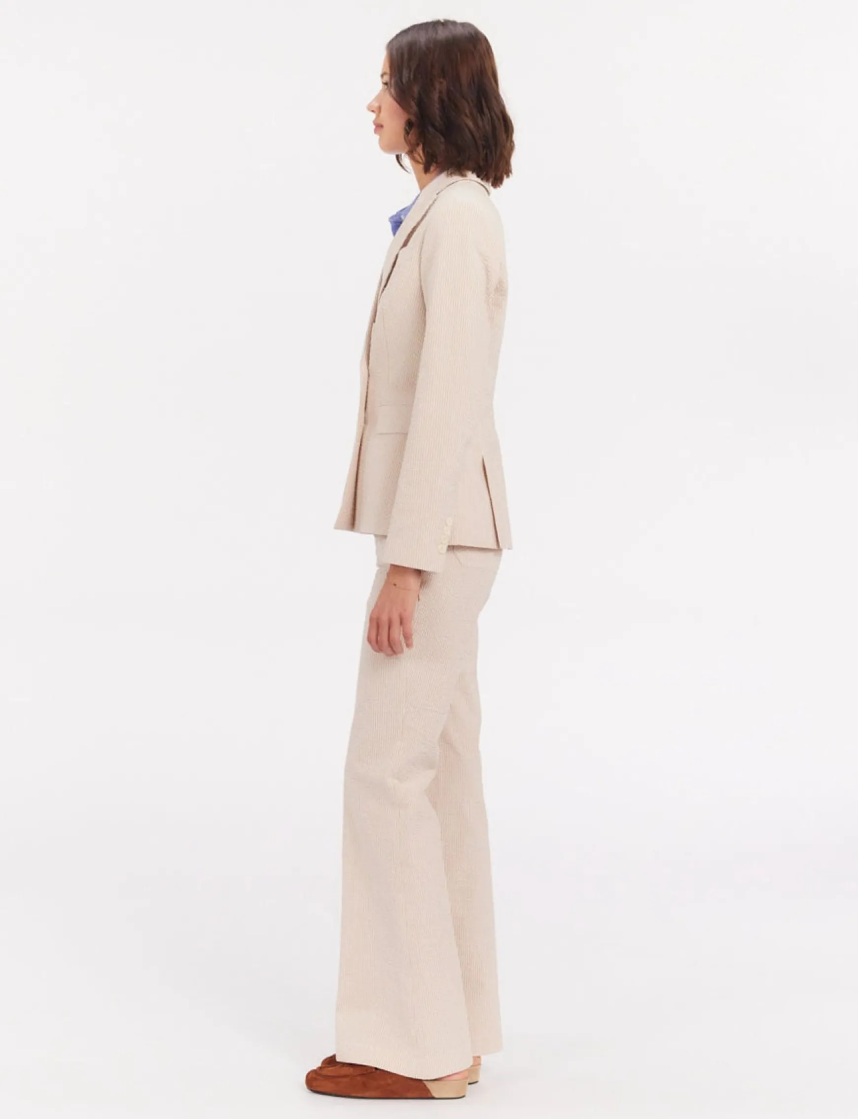 The new Maurice jacket is both comfortable and easy to wear. This jacket, which can be worn open or closed (double-breasted), represents Parisian elegance and chic. It can be worn as a total look with the matching Charlotte trousers or paired with autre trousers, why not jeans?