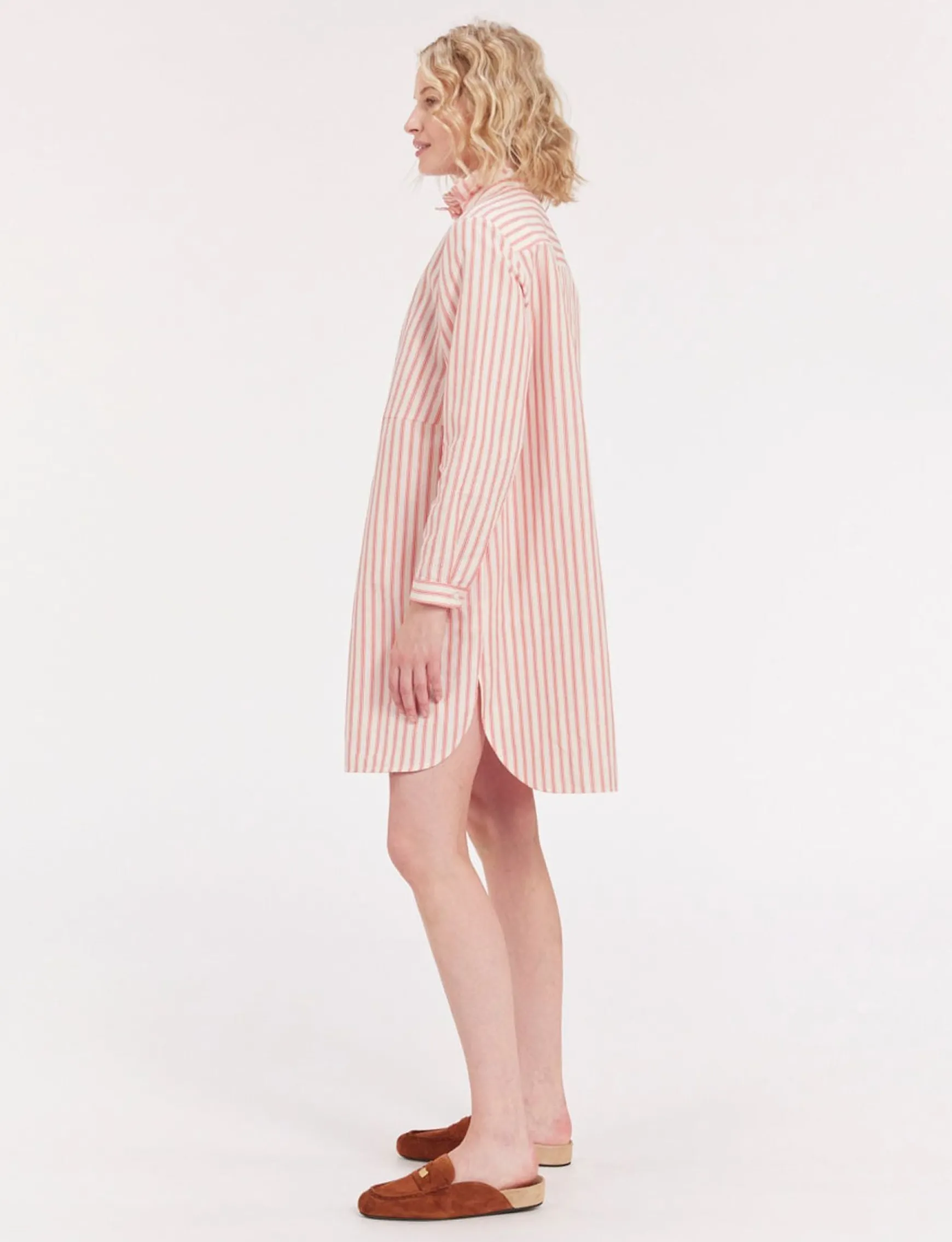 Monica dress in red and white striped linen