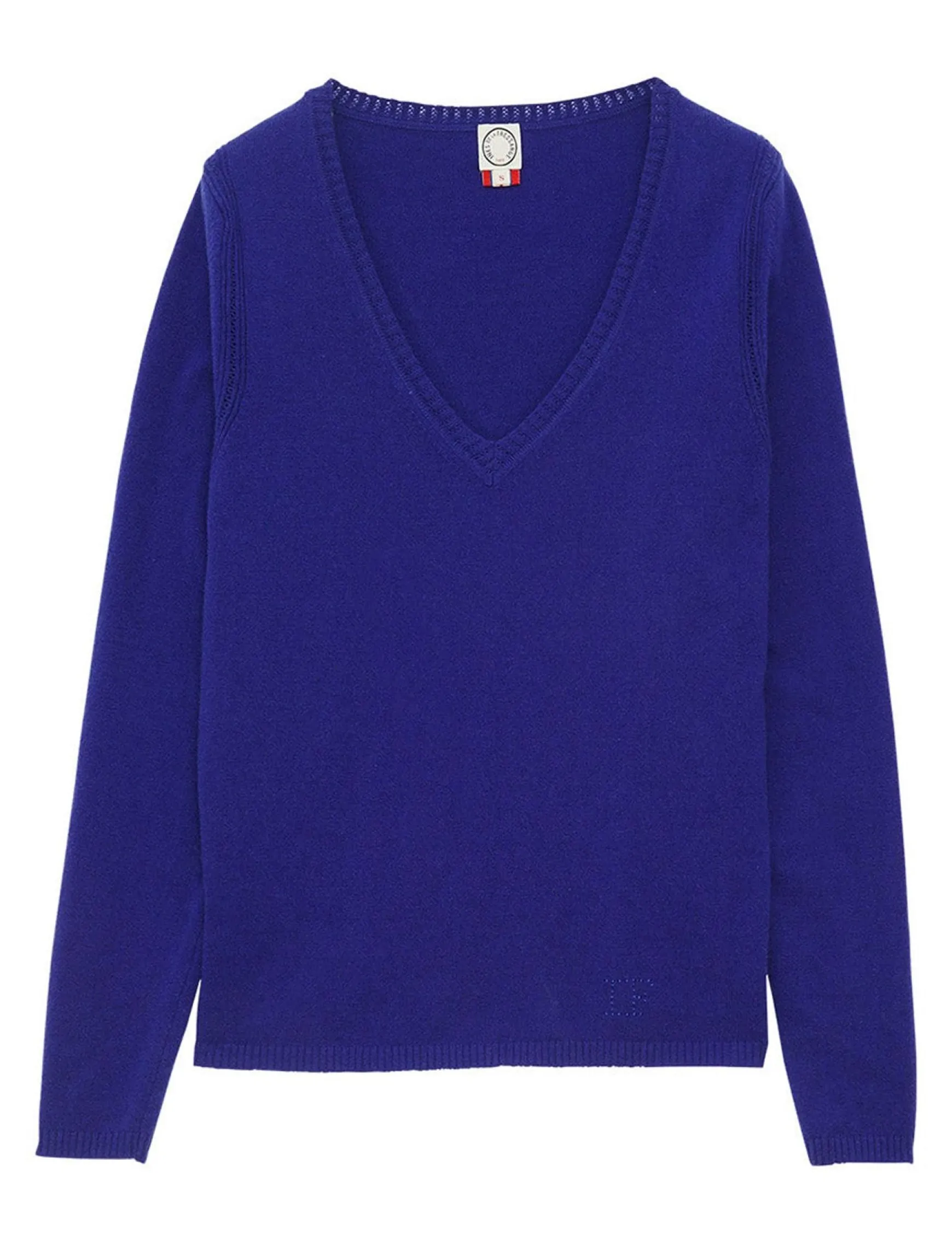 Linen or wool, you’ll need to choose before taking the Morgane V-neck jumper with you all summer long.
