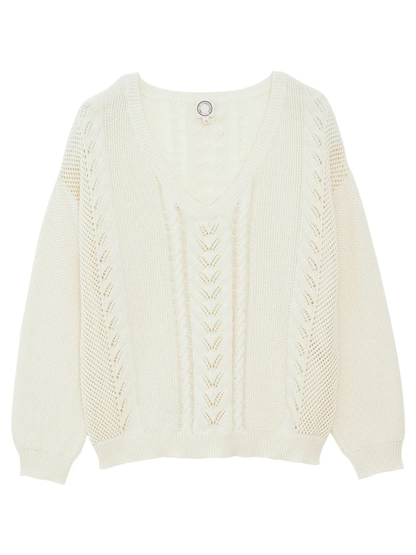 Natanya is a real trendy jumper, soft and supple, combining comfort and elegance. Its openwork fabric makes it trendy. The new Natanya jumper will be your companion all season long.