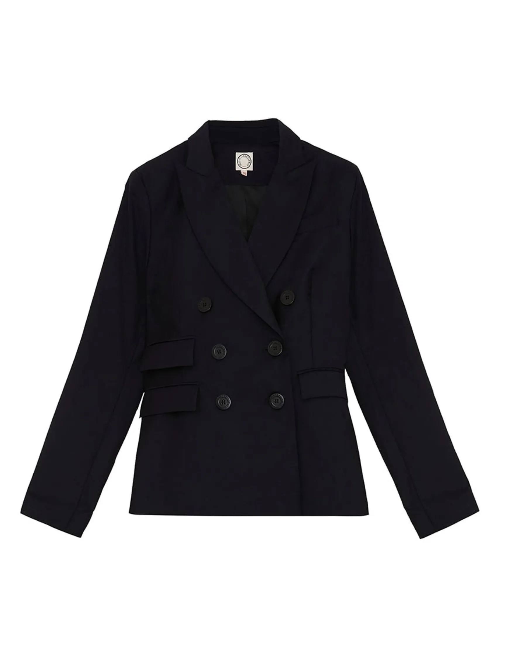 The timeless, elegant navy blue Maurice suit jacket is perfect for day or night.