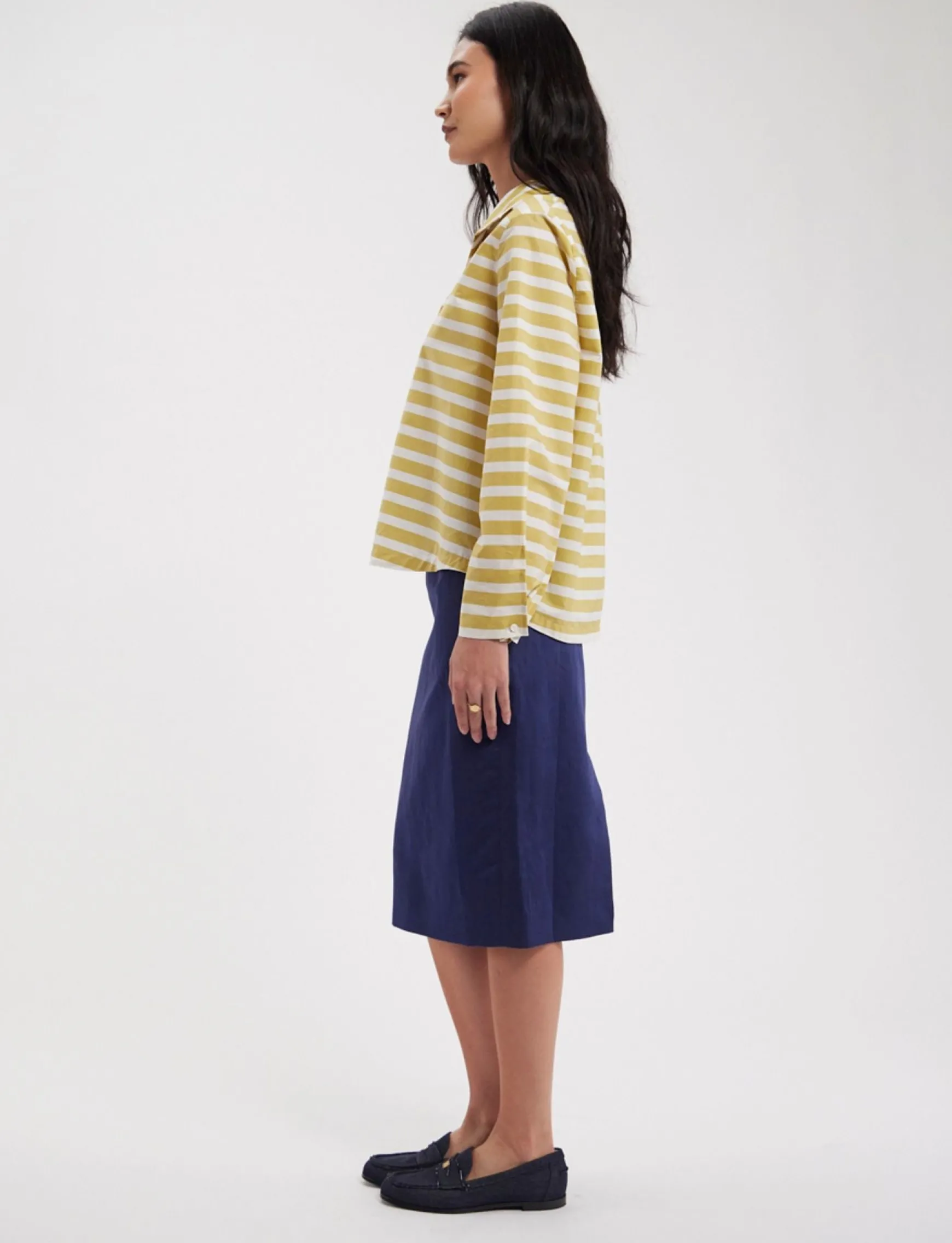 The Noa cotton top is a wardrobe classic. It combines elegance, casualness and comfort. Its loose fit makes it easy to wear, its collar gives it plenty of style and the many details give it a touch of sophistication that you’ll love! The loose fit of this top is deliberately oversized, so if you want it to sit closer to the body, choose one size smaller than your usual size.