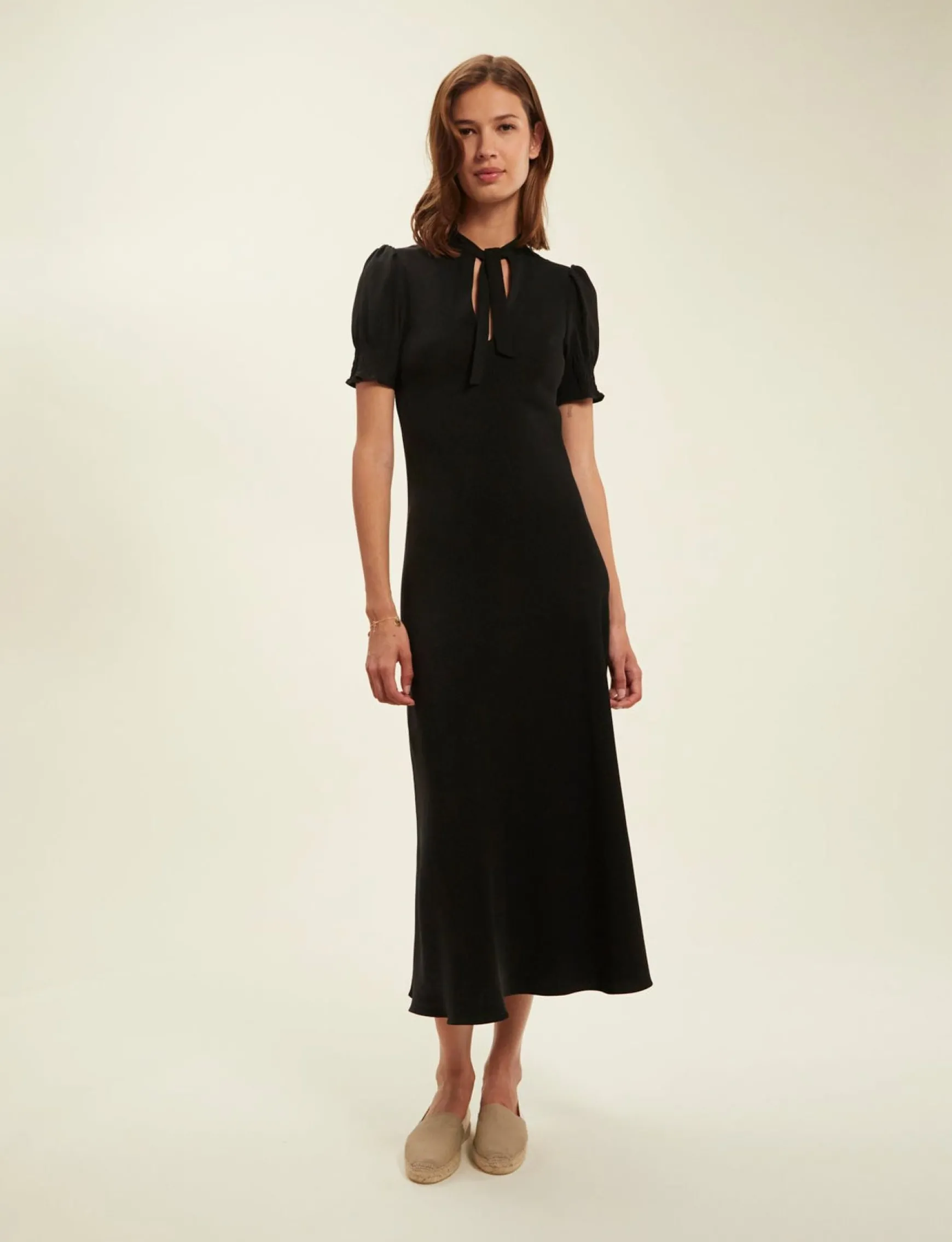 The black Cerise dress is a manifesto of elegance. Its cut and many finely-worked details, in particular its bow-tie teardrop collar, will make it your ally at all your summer events, no matter how dressy.