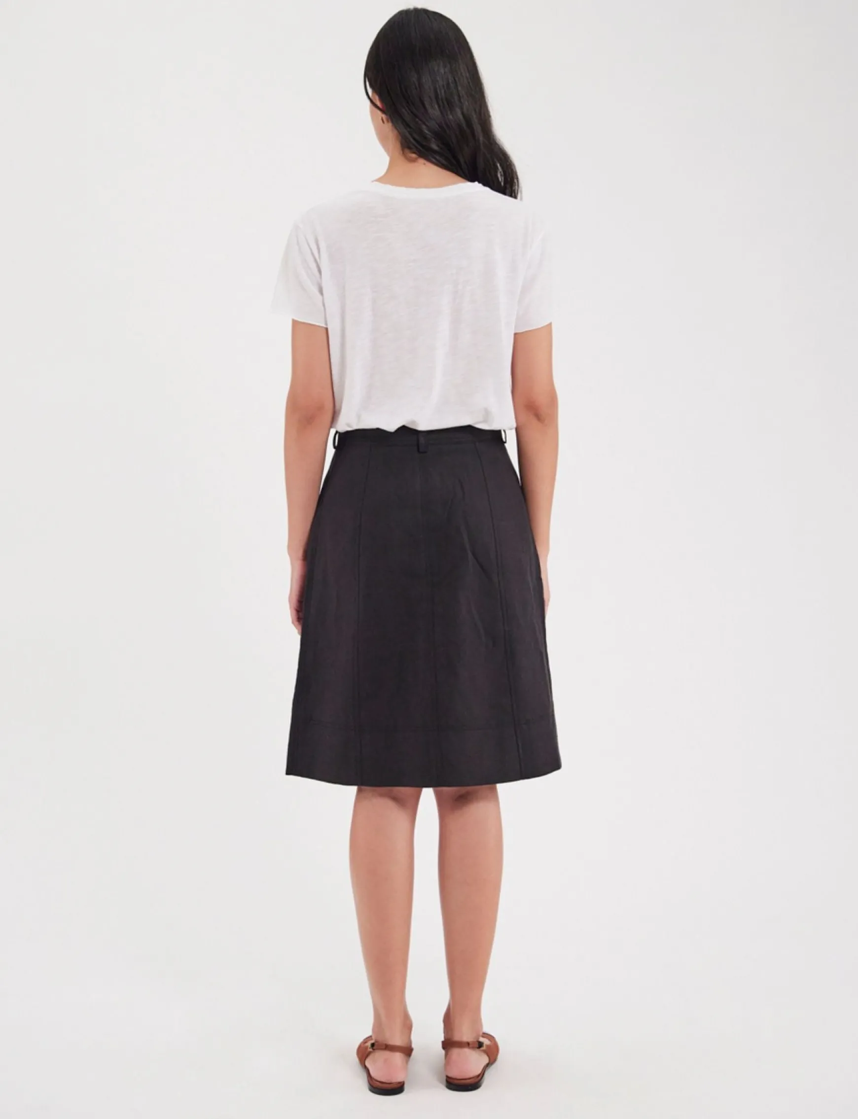Discover the new Rachel skirt with its elegant trapeze shape. Its stylish details and topstitching combine with the comfort and nobility of linen to make it ideal to wear. This season it comes in linen, the perfect material for the summer season, and its sober, elegant colour makes it perfect for a thousand occasions.