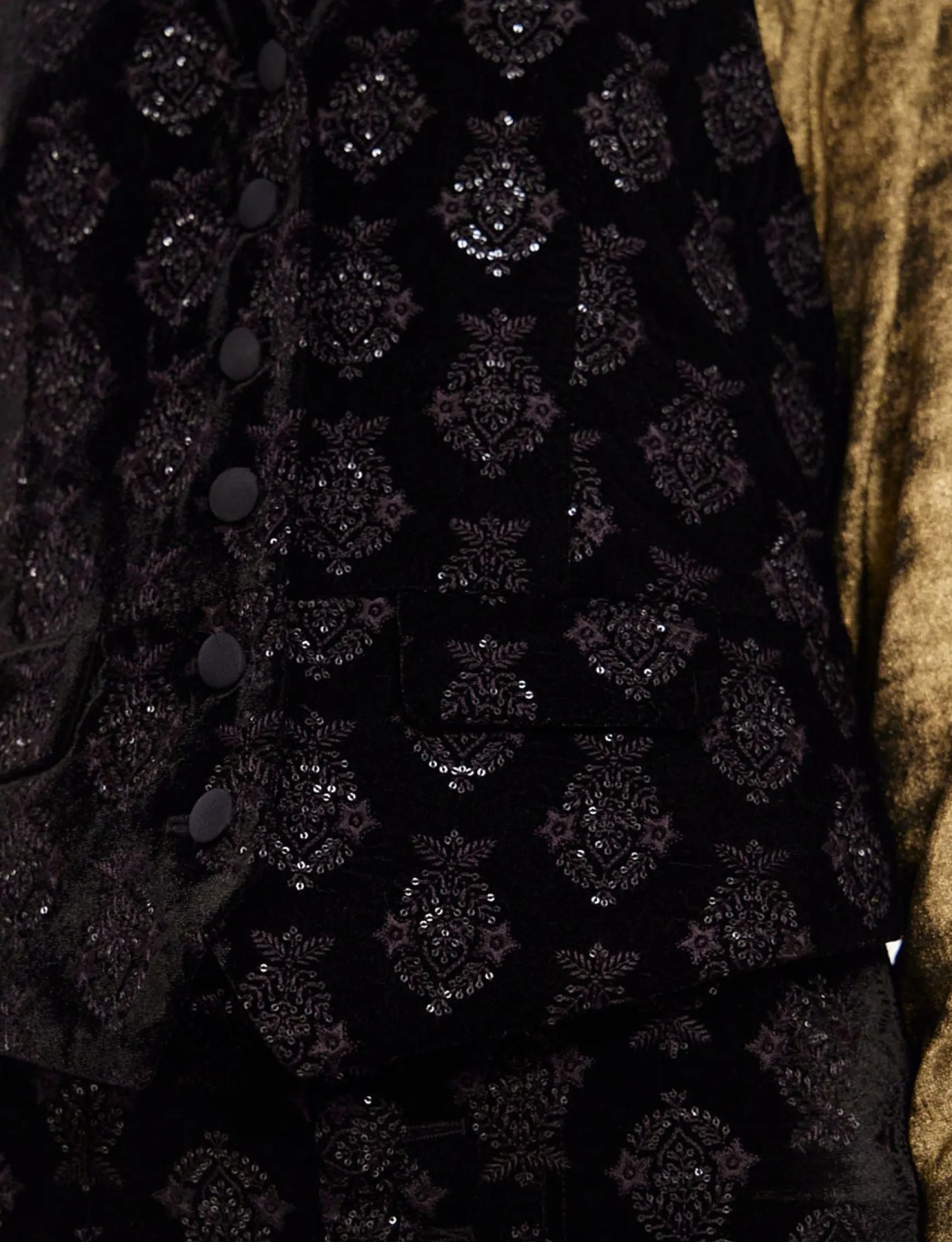 Ines de la Fressange Paris brings you the elegant black Robinson waistcoat in an embroidered velvet as original as it is refined. It can be worn with a shirt or next to the skin.