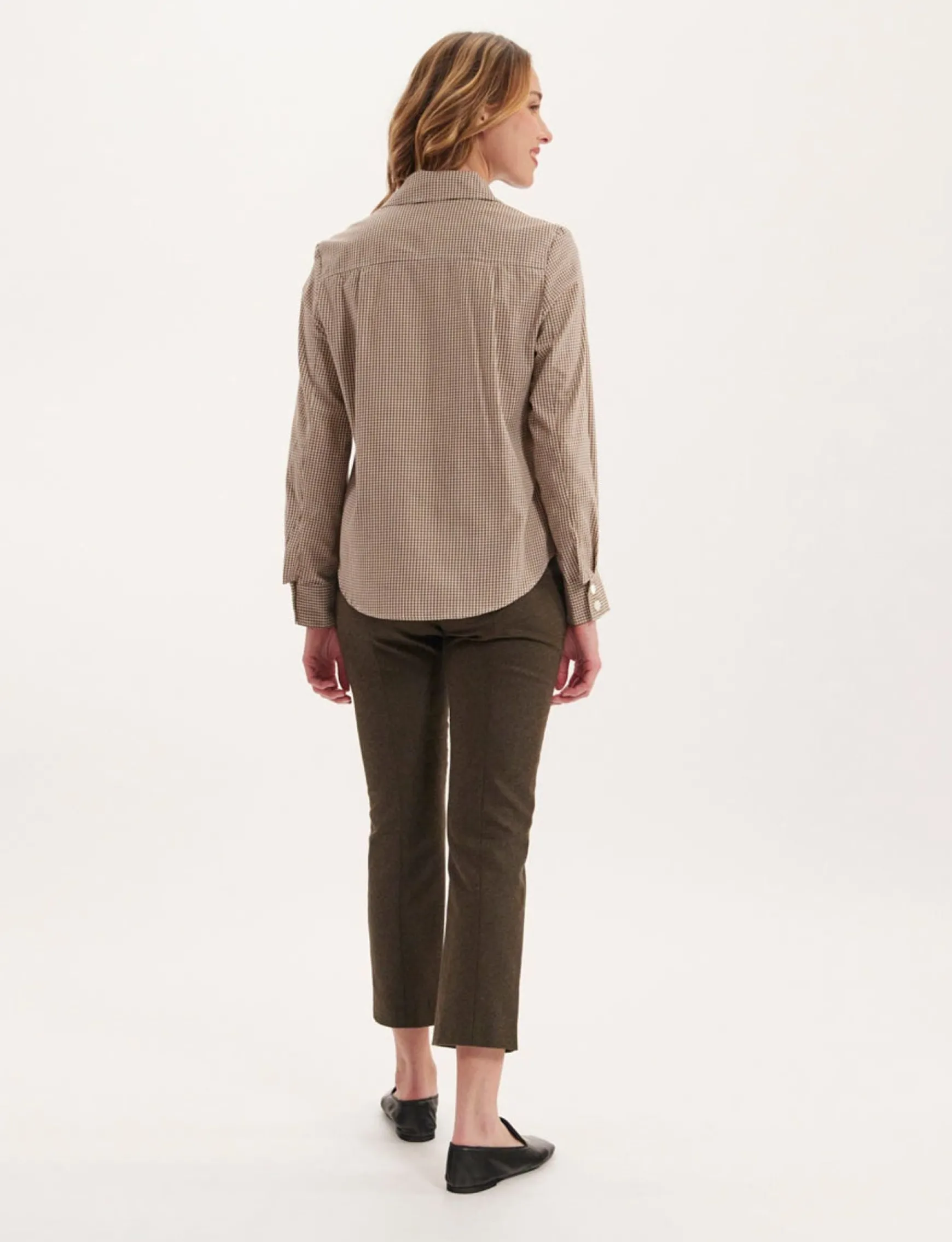 The Evana shirt is a straight-cut, slightly oversized shirt in beige cotton flannel, sober and elegant, that will enhance your wardrobe with a smart-casual piece