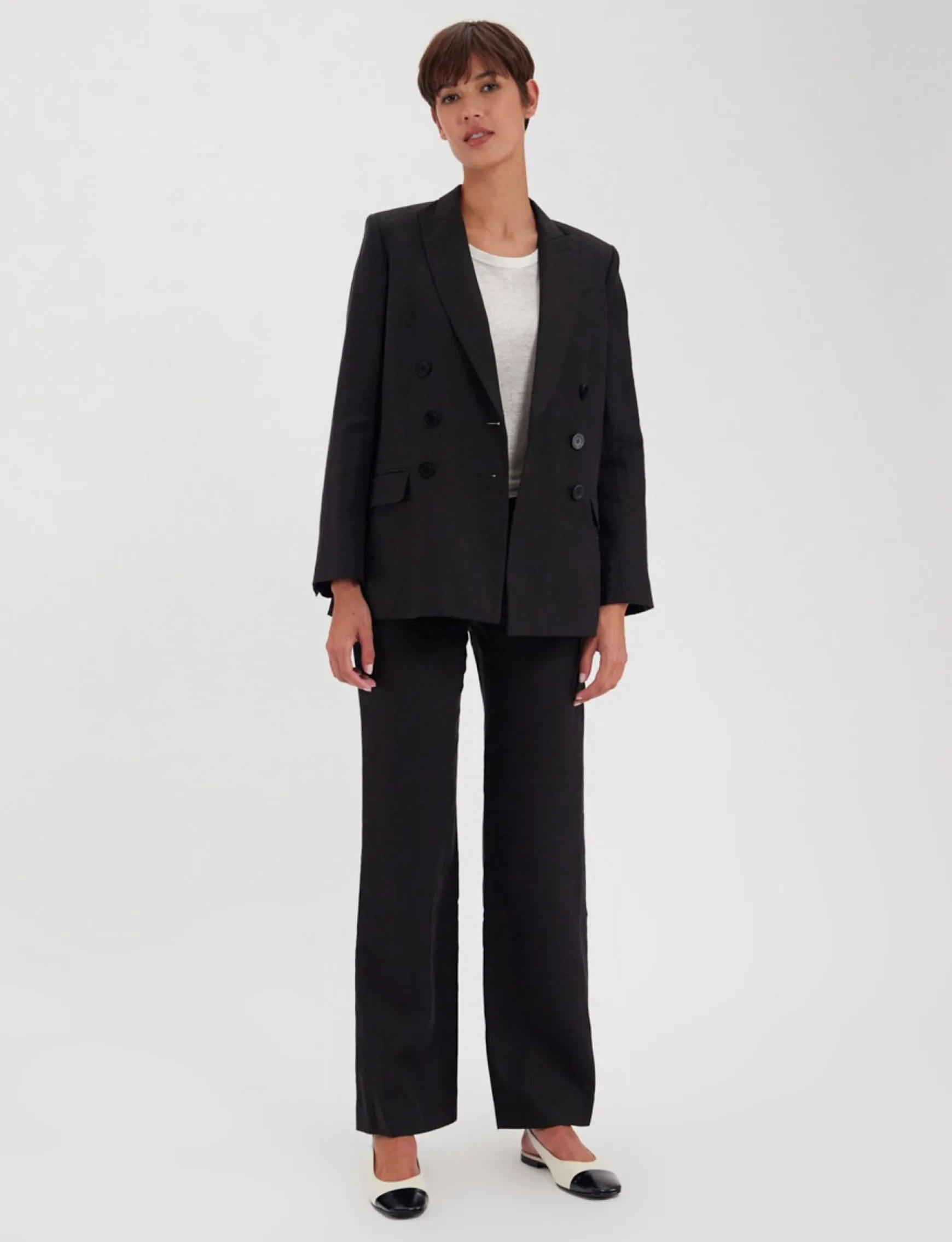 Discover Ezio , a very elegant double-breasted jacket that can be worn open or closed, symbolising Parisian chic. This version is made from linen, the noblest of materials.