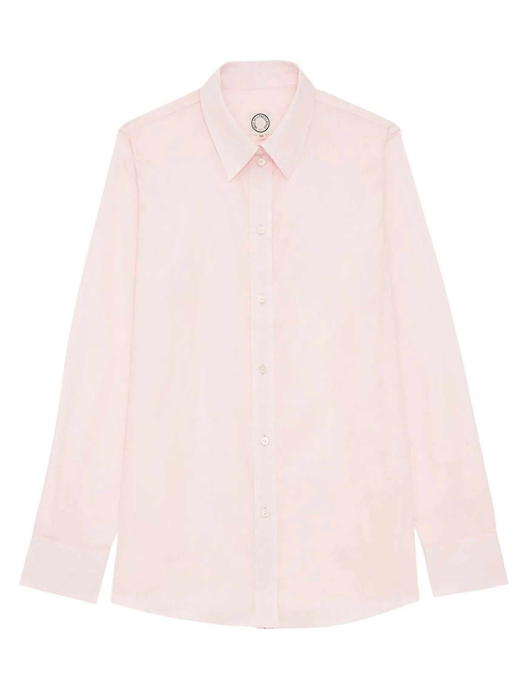 The Martin shirt is a must-have for every Parisienne, and Ines’ favourite… A timeless version in pale pink cotton, very slightly fitted, with the signature blue, white and red braid on the hem.