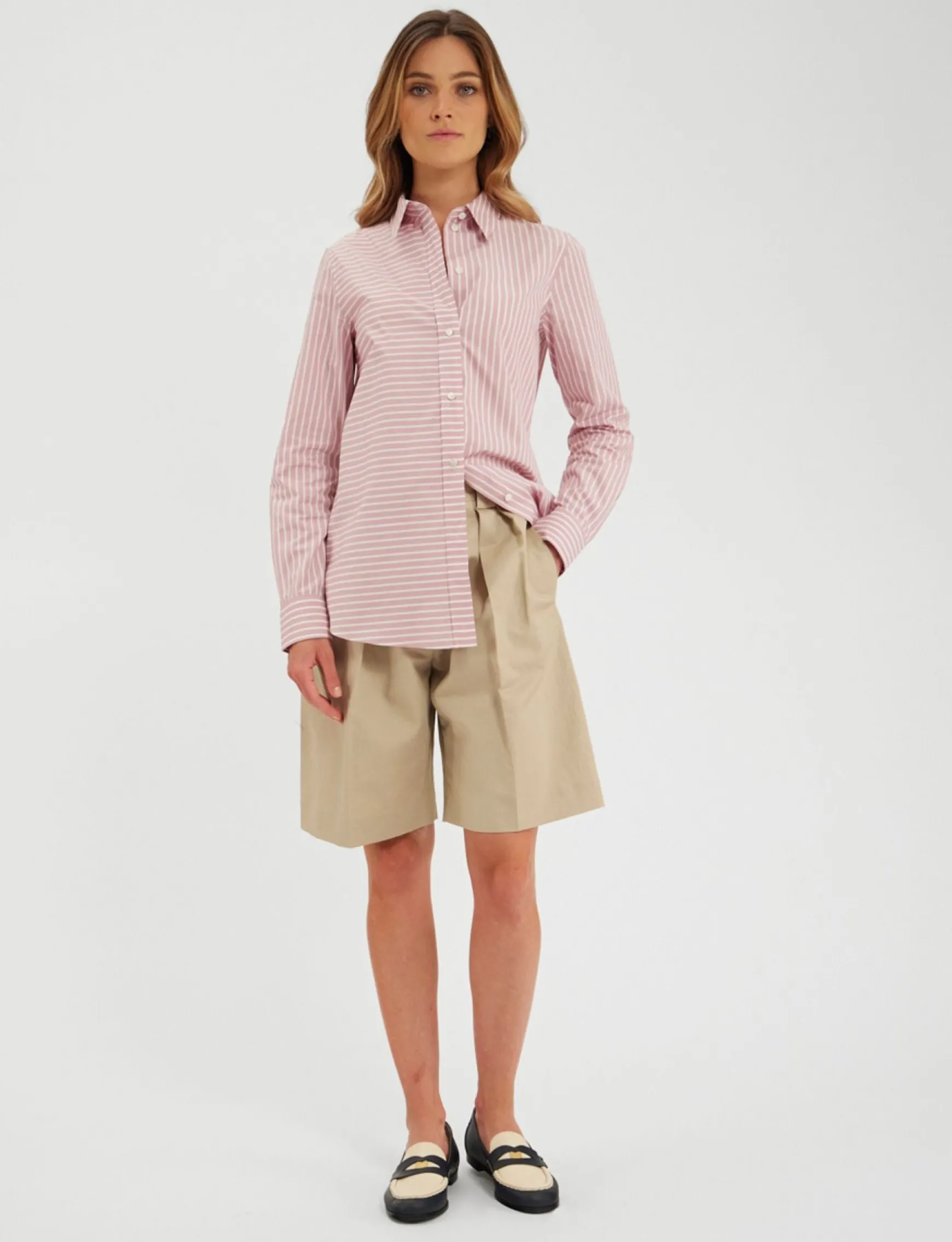 The Martin shirt is a must-have for every Parisienne, almost universal, and is undoubtedly Ines’ favourite… A timeless version in cotton, with a slightly slim fit and signature blue, white and red piping on the hem, it’s bound to win you over and become an everyday essential.