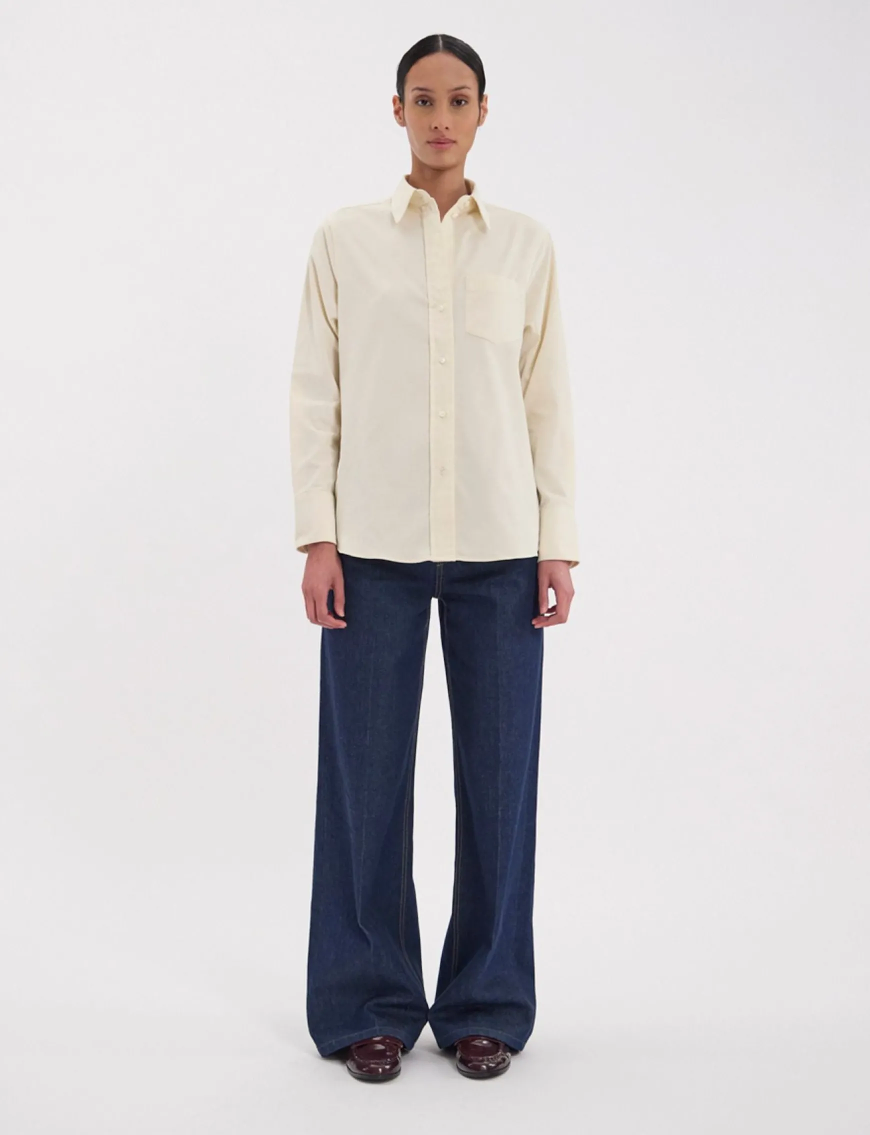The Maureen shirt, emblematic of the House, with its easy, timeless straight cut, will add an elegant touch to all your outfits and complement your wardrobe perfectly. The small embroidery on the chest is a detail that adds to its personality. It’s equally suited to formal or casual wear, and can be teamed with jeans or dress trousers, for example.