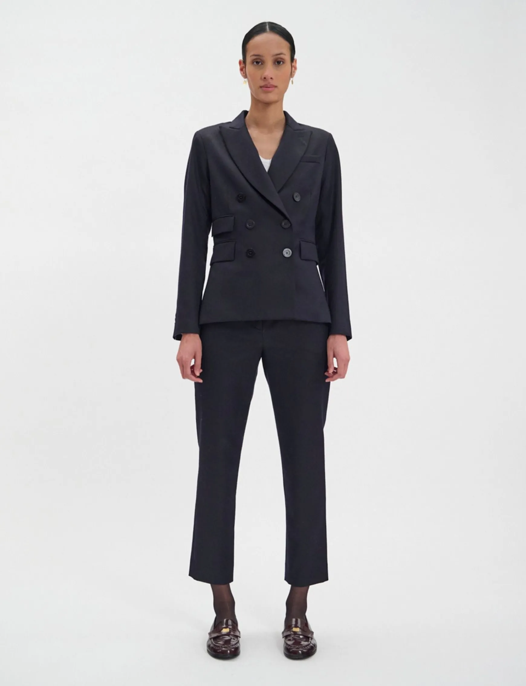 The timelessly elegant navy blue Maurice suit jacket is perfect for day or night.