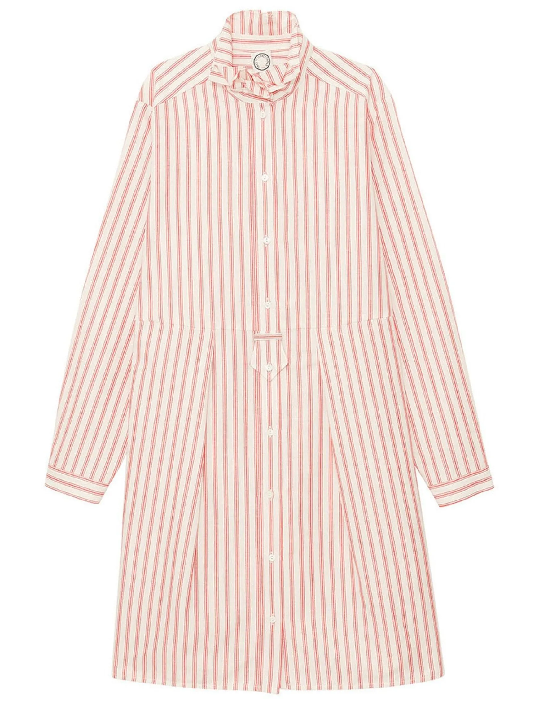 Monica dress in red and white striped linen