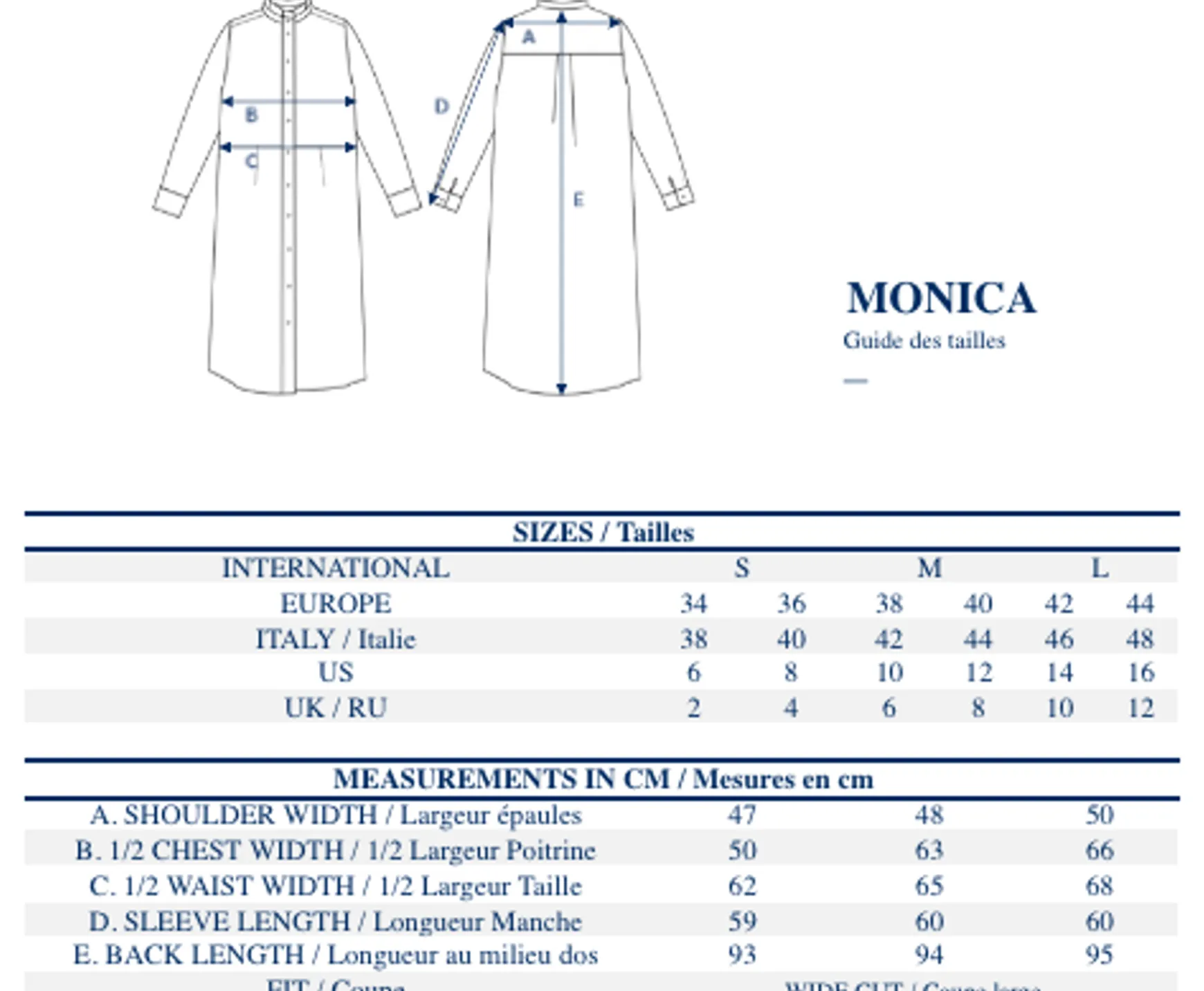 Monica is a new day dress that combines comfort, with its loose fit, and elegance, with its attention to fashion detail.