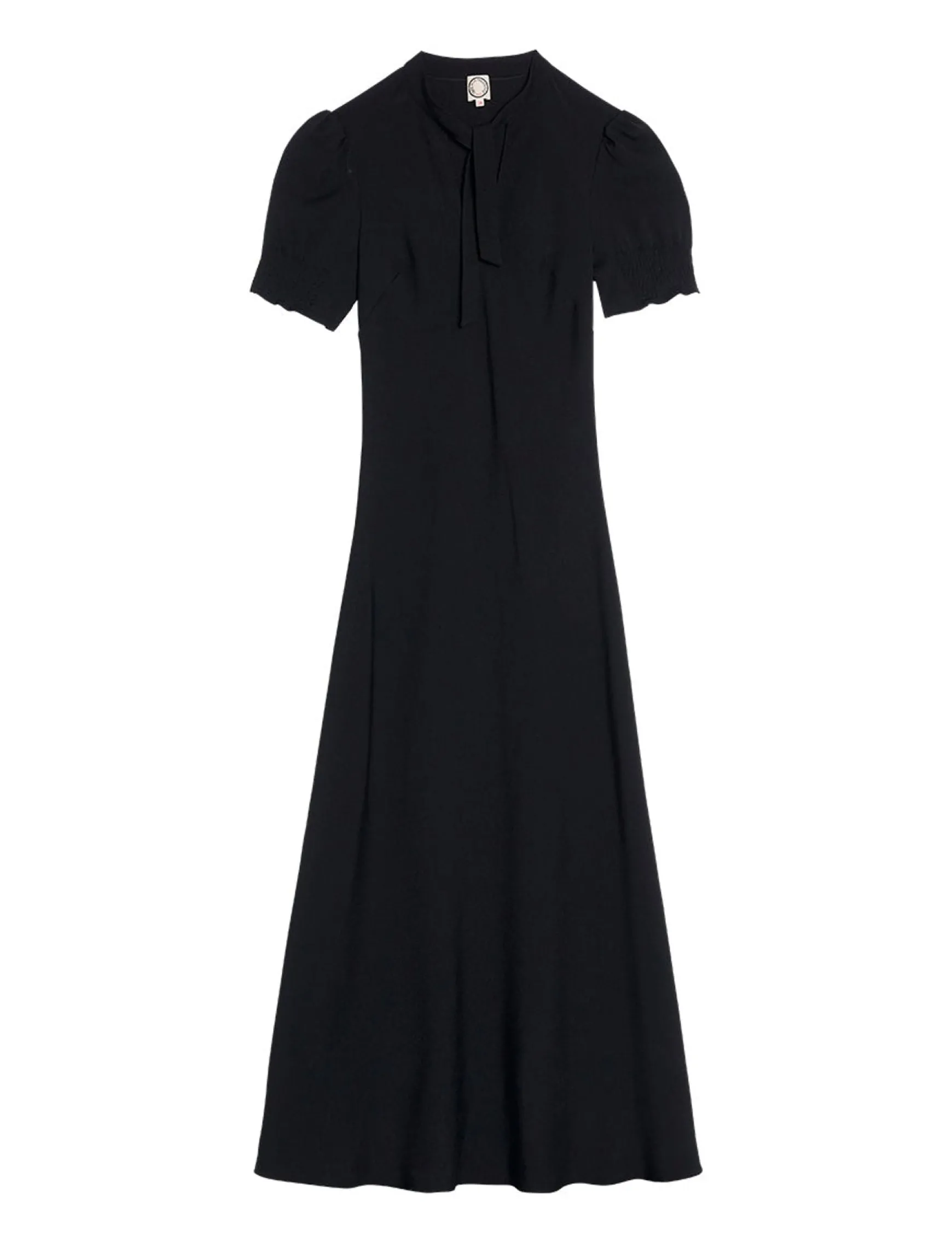 The black Cerise dress is a manifesto of elegance. Its cut and many finely-worked details, in particular its bow-tie teardrop collar, will make it your ally at all your summer events, no matter how dressy.