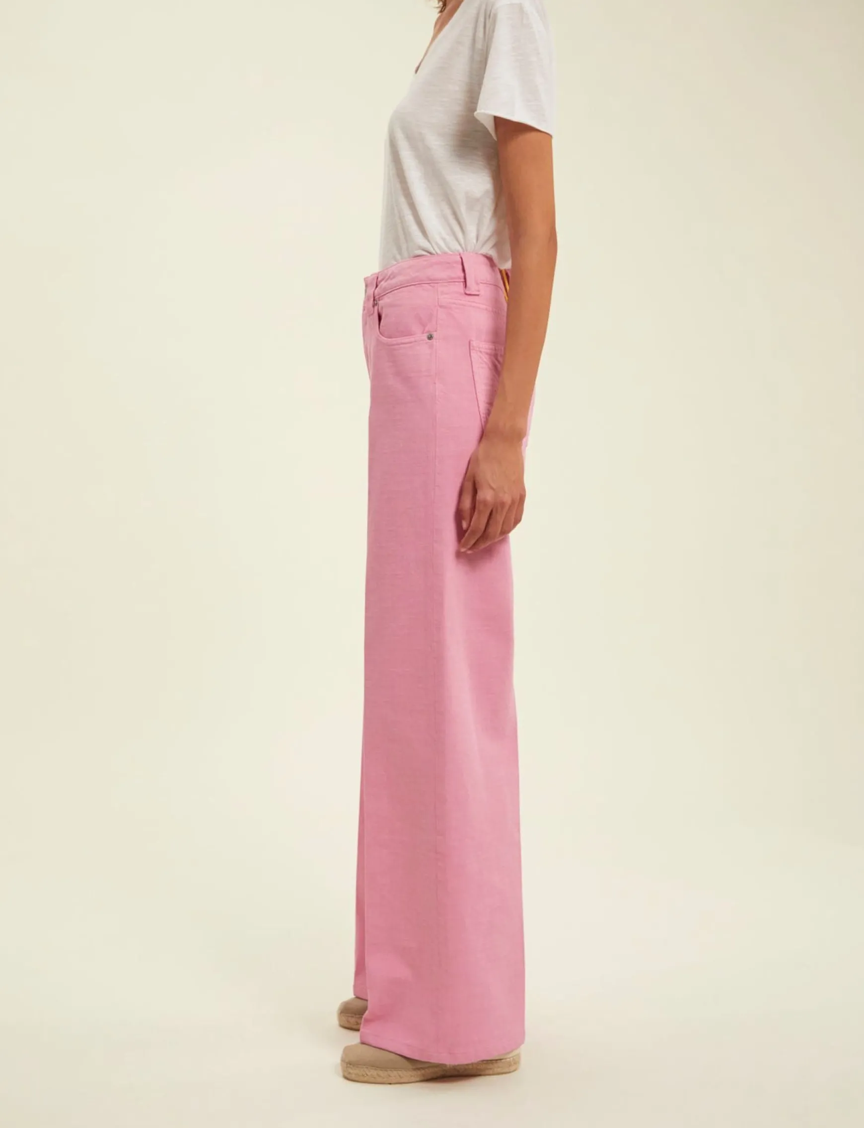 « Ines de la Fressange Paris by Atelier Notify » embroidered in red on the inside back waistband