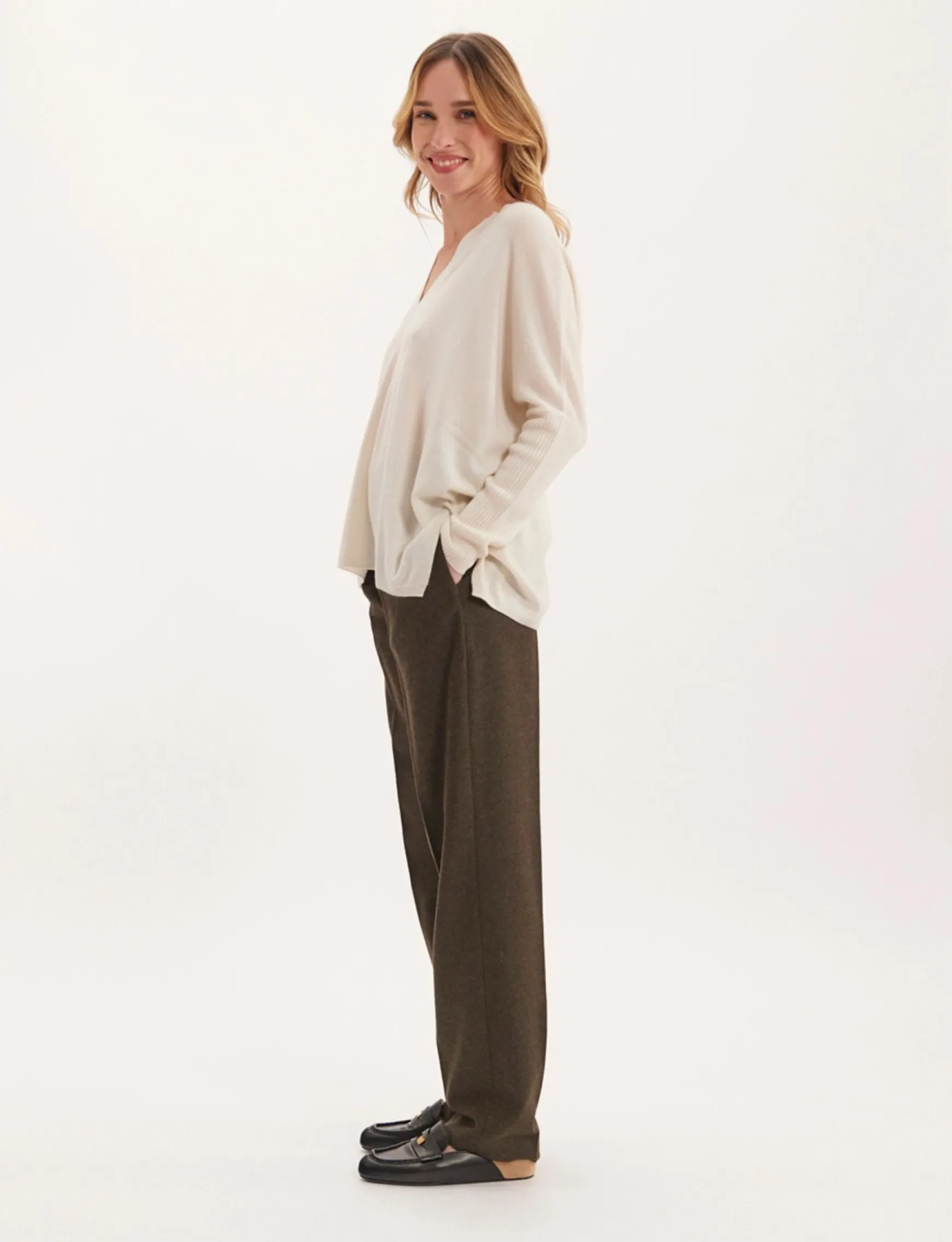 Loose poncho-like jumper in 100% cashmere, made in collaboration with the brand Notshy. You’ll love its generous shape, open collar, incredible softness and comfort.