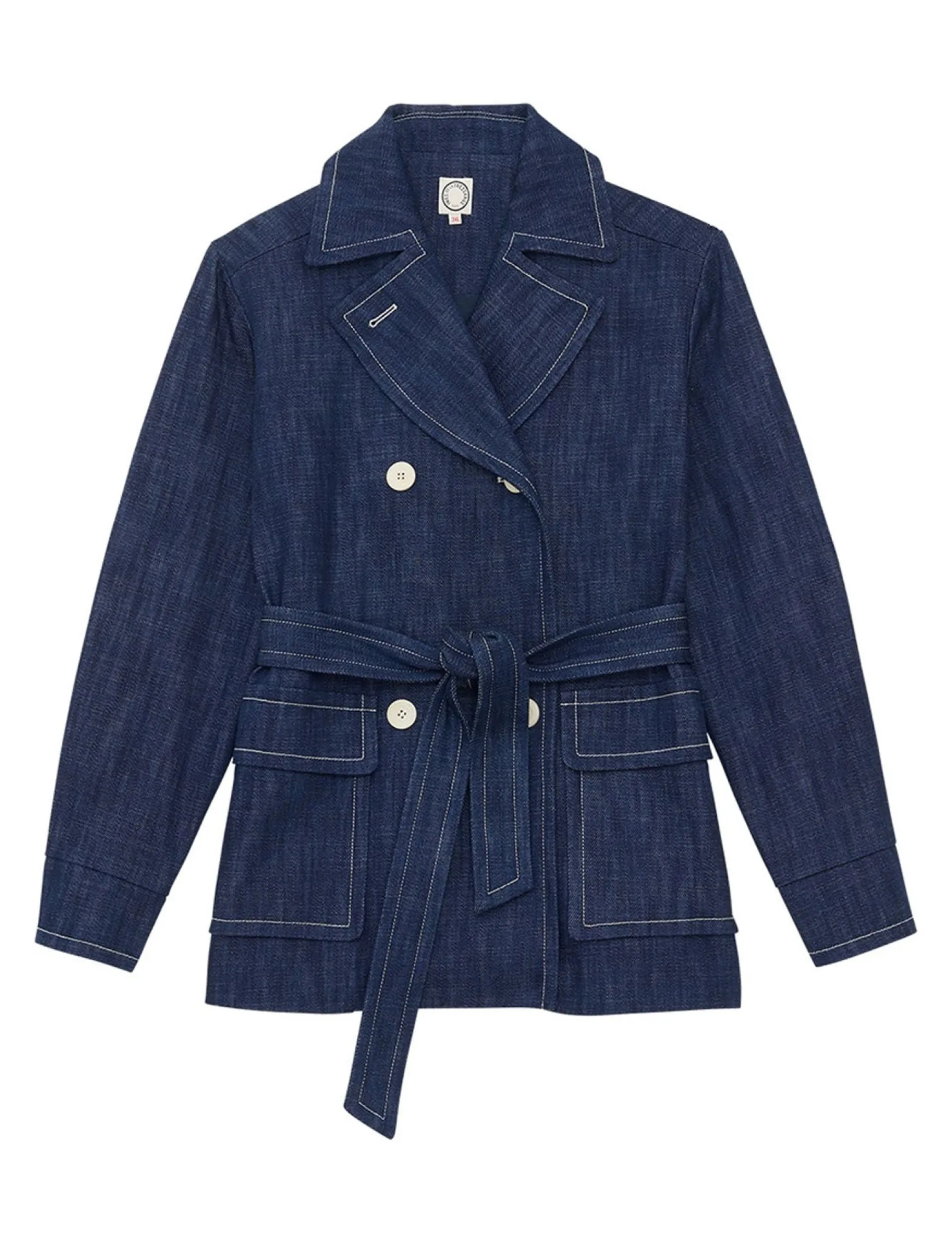 Romaric coatCircumcised cutCurtleneckWelt back collarDouble breasted front closureLong sleevesButtoned cuffsFront flap patch pocketsWaisted waistband